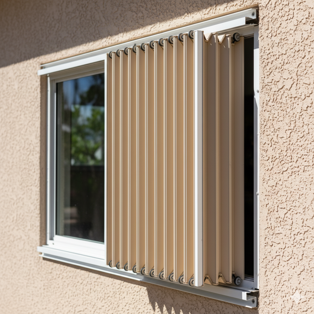 Stylish, Strong, and Storm-Ready: effortless Accordion Shutters.